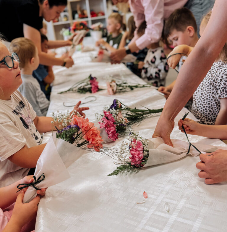 - Florystyczny mini – warsztat - każdy tworzy własny bukiecik lub kompozycje kwiatową.